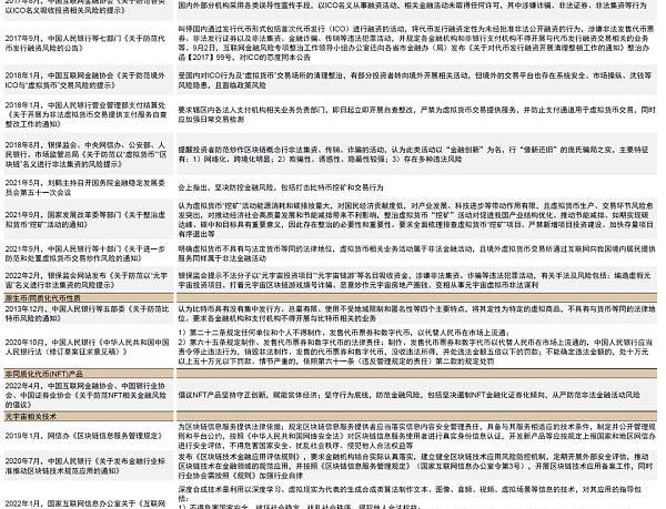 我國監管部門對金融機構進行元宇宙相關探索發展持審慎態度,防范金融不確定性。由于元宇宙的發展帶來了信息保護、資產保護等方面的問題,例如投資者可能受到黑客攻擊造成的私鑰泄露、財產損失,以及加密貨幣資產價格不穩定,DeFi的高杠桿特性進一步放大市場風險等傷害。故涉及“元宇宙金融”的活動在我國發展空間受限,部分政策對融資/交易/挖礦等活動、對原生幣/同質化代幣的性質、對NFT產品、以及對元宇宙相關技術應用的規范作出了明確的規定,主要目的為應對風險,保護投資者個人財產與信息安全,防范金融不確定性。
