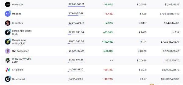 24小時內銷售漲幅前十的NFT數據來源:NFTGO