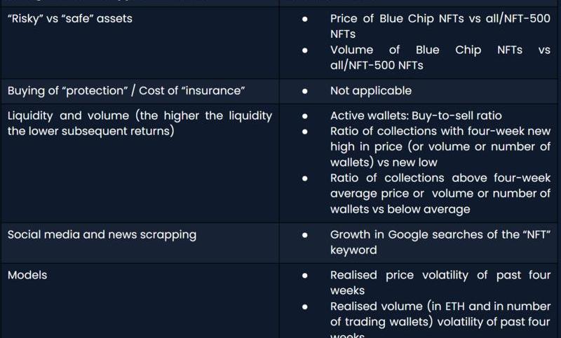 我們使用上述框架生成旨在近似NFT投資者風險偏好的鏈上指標。