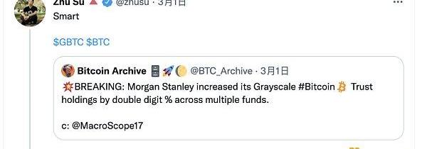作為GBTC第一大持倉機構,ZhuSu一直所期待的便是GBTC早日正名上位,從信托升級為ETF,這樣其持倉價值將快速躍升超過40%。