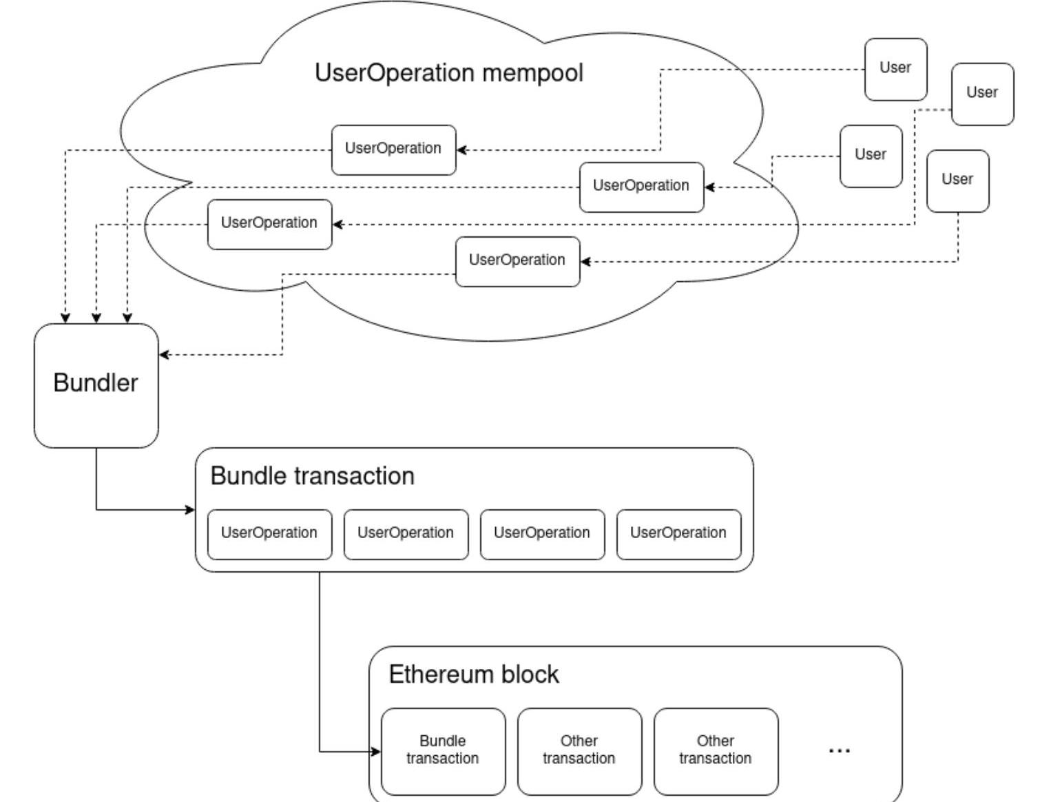 ERC-4337嘗試通過額外的協議手段實現和EIP-2938相同的事情。用戶需要發送稱為用戶操作的鏈外消息,這些消息由區塊提議者或為區塊提議者生成bundles的構建者批量收集并打包成單筆交易。提議者或構建者負責過濾操作以確保他們只接受支付費用的操作。用戶操作有一個單獨的mempool存儲池,連接到這個存儲池的節點會進行ERC-4337特定的驗證,以確保用戶操作在轉發之前能夠支付費用。