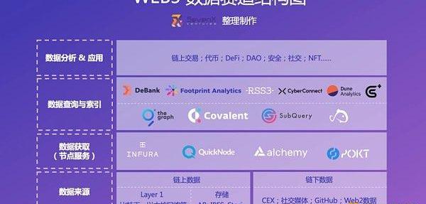 Web3數據賽道的結構可以被劃分為四個層次,分別是最底層的數據來源,第二層的數據獲取,第三層的數據查詢與索引,還有最頂層的數據分析與應用。