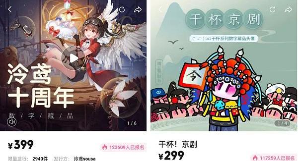 “泠鳶十周年紀念”數字藏品是首個虛擬主播數字藏品,同時也是B站發行最貴的一款數字藏品,售價399元。除此之外便是6月16日發布的“干杯京劇”系列,售價299元。