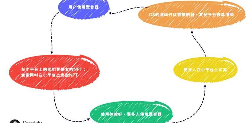 但其他老牌平臺就沒有那么幸運了,例如Rarible和Foundation。因為誕生的時機不對,在當時沒有出現一家能夠占領市場的聚合器平臺,使得大多數交易平臺都是曇花一現甚至天生夭折,沒有辦法集眾人之力來對抗OS;并且自身轉型過程中并未成功向全品類進發,產品更迭速度過慢,留不住用戶,最終只會因流動性問題而逐漸失去市場份額,陷入OS的「飛輪效應」中。??