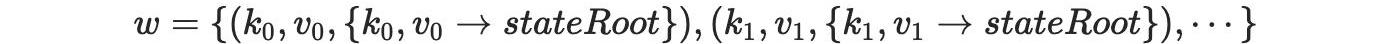 定義了一種變量,狀態見證(w):是一些key-value對,以及他們在默克爾樹中的證明,組成的集合: