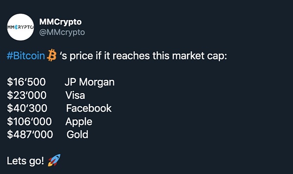不同價格的比特幣與頂級公司相當的市值??來源:Twitter
