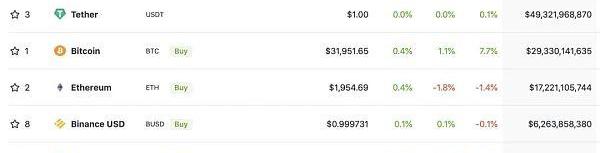 法幣支持的穩定幣:由法幣支持的穩定幣與支持它的資產(通常是美元資產)之間保持一定的對應關系。眾所周知,Tether使用多種資產支持其1美元掛鉤,包括其他數字代幣。一個理想的法幣支持的穩定幣與儲備美元的比例至少是1:1。穩定幣持有者可以確信,他們的1單位穩定幣總是可以在服務儲備中兌換1美元。法幣支持的代幣:USDC(Circle),USDT(Tether),USDP(Paxos),BUSD(Binance)。