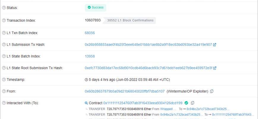 交易發送完成后,Wintermute發現無法訪問這些代幣,因為提供的地址是他們尚未部署到Optimism/L2的Ethereum/L1多簽地址。該Optimism/L2多簽地址由黑客部署,2000枚OP代幣也被黑客盜取。