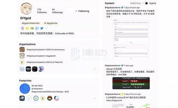 首先就是不再支持非Web3的應用,比如推特,用Joshua的話說,就是「結束軟弱革命的方式」。此前RSS3還兼具直接索引Web2.0應用的功能,「但其實這件事情是有問題的,Web2并不開放,推特隨時能關API。而且這種分發沒有解決用戶的數據所有權問題,你只是幫他展示了一下」。而關于數據所有權的問題,NaturalSelectionLabs則專門打造了另一款產品——Crossbell。