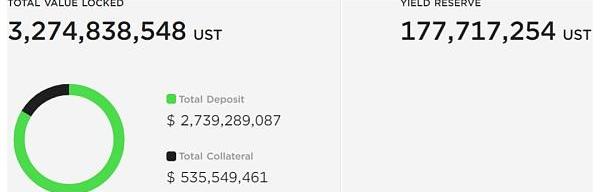 UST大多存儲在Anchor上。Anchor是Terra鏈上的借貸協議,相當于鏈上的官方銀行,通過提供超高的APY,吸引用戶存入巨量的UST,極大程度地增加了UST的供應量。