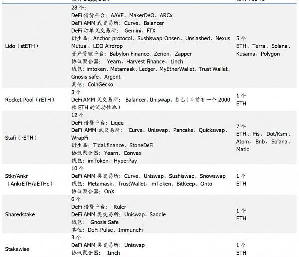 同時,隨著以太坊合并日期的逐漸迫近,質押風險的降低、賽道生態的日漸繁榮,我們認為合并前后將迎來以太坊質押比例的陡增。而且質押渠道的邊際增長將更多來源于除以太坊官方、交易所之外的流動性質押服務商來源。官方獎勵比例的降低,也將促使用戶選擇具有更多DeFi增值的服務商平臺,來獲得更高的年化收益。