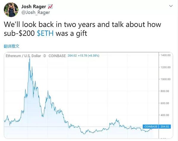 XRP/HKD-3.68%加密貨幣資深交易員和Twitter評論員JoshRager指出,隨著以太坊出現的所有看漲消息,200美元可能是目前一個非常好的進場時機。