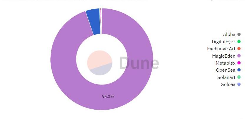 MagicEden在SolanaNFT市場交易量的占比