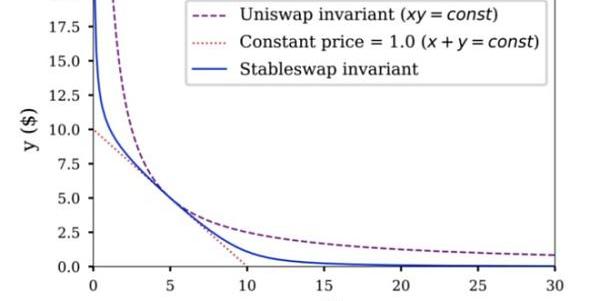 因此相比于UniswapV2的恒定乘積算法,Curve平臺上交易的穩定幣、pegged資產的交易對往往可以基于更少的流動性資金而取得更低的交易滑點,極大的提升了穩定資產交易過程中的流動性資金利用效率。