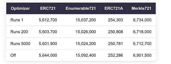 但請務必理解,我們給出的值只適用于ERC721的不同變體的mint函數,如果我們的合約執行完全不同的代碼,我們可能會發現不同的結果。