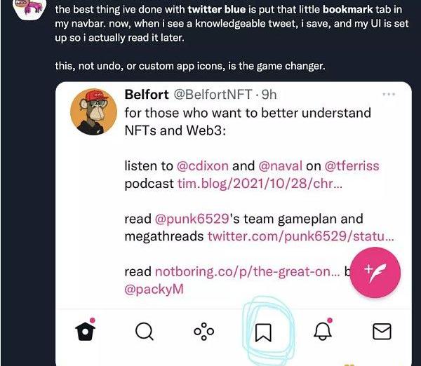 幾乎每一個流行的加密貨幣話題都會有一個好的主題。你不可能實時閱讀它們。在每個星期結束時回顧你所有的書簽。如果你所在的地方有TwitterBlue,就注冊它,并將這些推文整理到書簽文件夾中。每個月3美元的費用對這個功能來說是非常值得的。