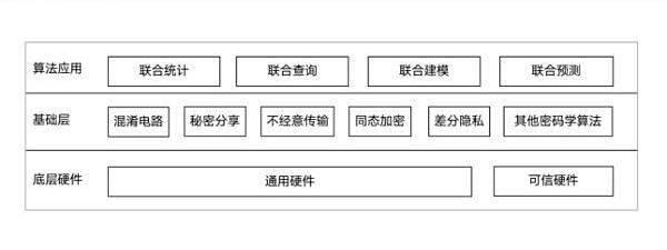 1)多方安全計算:基于多方數據協同完成計算目標,實現除計算結果及其可推導的信息之外不泄露各方隱私數據的密碼技術