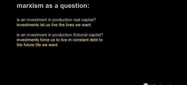 請注意,固定資本是資本主義歷史上一些最具掠奪性的方面的核心:工作收費過高,工人工資過低,不斷為尚不存在但需要經濟通過越來越多的生產來生產越來越多的貨幣來滿足利率的過高貸款提供服務。另一方面,流動資本不存在這些問題。