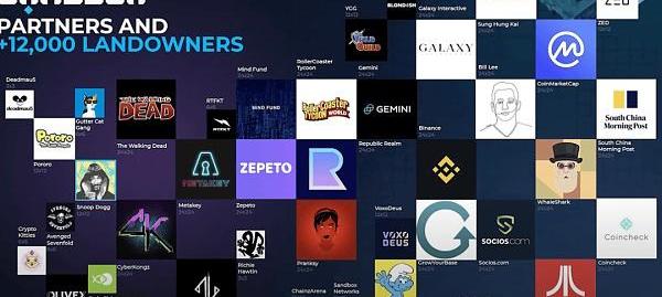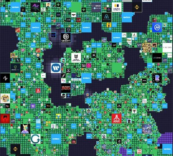 這種規模的土地覆蓋了沙盒地圖的12%以上,并擁有著名的持有者名稱,包括Atari、Pranksy、CyberKongz、Binance、Ubisoft、Socios、TWD、Gemini、Coinmarketcap、MetaKey、RepublicRealm、華納音樂集團和南華早報。