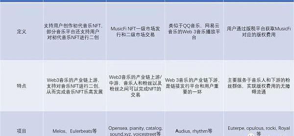 目前Web3音樂不同的子賽道劃分