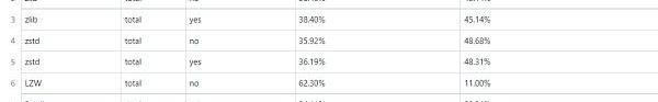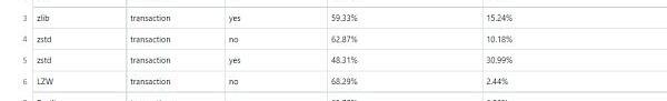帶有字典的zstandard算法明顯性能更好,因為每筆交易和存儲在字典中的交易之間都有共通點。但是,當一次性壓縮大量數據時,zstd的性能仍然更好。