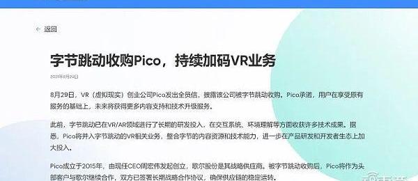 隨后2021年8月底,字節跳動以近90億的價格收購VR硬件廠商Pico,該事件也被視為“國內元宇宙的第一槍”,國內對“元宇宙”的關注激增。