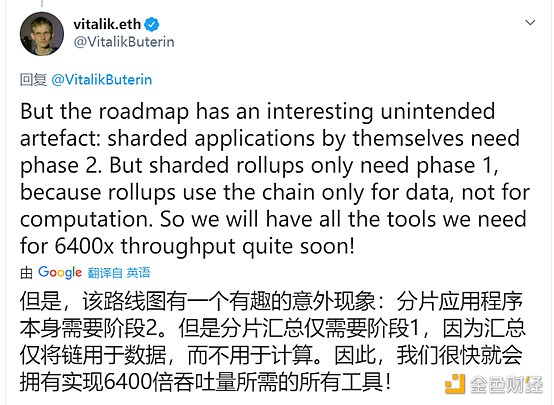 但是,該路線圖有一個有趣的現象:分片的應用程序本身需要階段2,但是分片的Rollups僅需要階段1,因為Rollups僅將鏈用于數據,而不用于計算。因此,我們很快就會擁有實現6400倍吞吐量所需的工具。