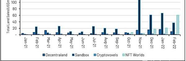 新興元宇宙的一個關鍵問題是:用戶將在哪里?隨著人們涌入擁有人們聚集的空間,許多平臺的虛擬土地銷售在過去一年中有所上升。也許這場虛擬土地熱潮的兩個最大受益者是Decentraland和Sandbox,這兩個都是免費游戲平臺,擁有有限數量的代幣化土地。