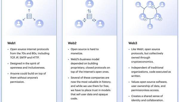 Web1只讀信息,Web2讀取+書寫信息,Web3讀、寫?&擁有信息。