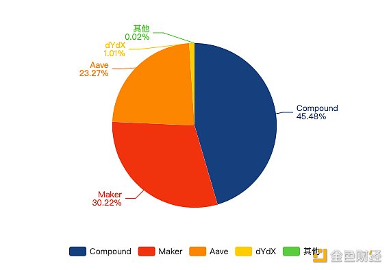 DeFi借貸平臺借款占比,金色財經制圖, 數據來源:Debank