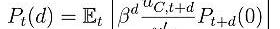 家庭也可以選擇寄送鈔票贖回。假設銀行有償付能力,一張價格為Pt(d)的鈔票需要d個周期才能兌現,其面值為消費品Pt+d(0)=1。該家庭的鈔票投資組合的一階條件決定了鈔票的價格: