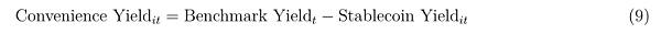 我們的穩定幣便利收益措施的一個擔憂是交易對手風險。貸款利率中可能存在交易對手風險溢價。事實上,當使用隱含回購利率和OIS而不是比特幣貸款利率時,我們的便利收益率估計會更低,因為我們預計比特幣貸款利率的對手方風險溢價要小得多。出于這個原因,我們更喜歡用比特幣和Tether的貸款利率之間的利差來衡量穩定幣的便利收益,因為每個交易對手風險都有希望抵消。這一指標擁有最長的數據歷史,也是最保守的指標,因為類似貨幣的穩定幣的貸款利率應該低于比特幣利率。
