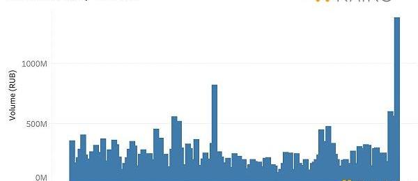 交易量上漲主要是由于受到制裁和對盧布的潛在影響而恐慌的投資者涌向避險資產。