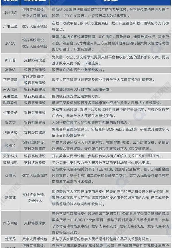 上市數字人民幣技術服務商基本情況