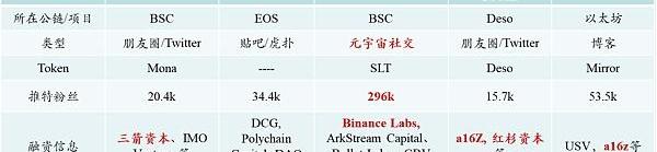 SocialFi可能是下一個NFT風口,目前SocialFi龍頭項目為MonacoYacht,BBS,Secondlive,DecentralizedSocial以及Mirror。其具體情況如下所示。其中Deso為專門的SocialFiLayer1公鏈,后續會詳細分析。