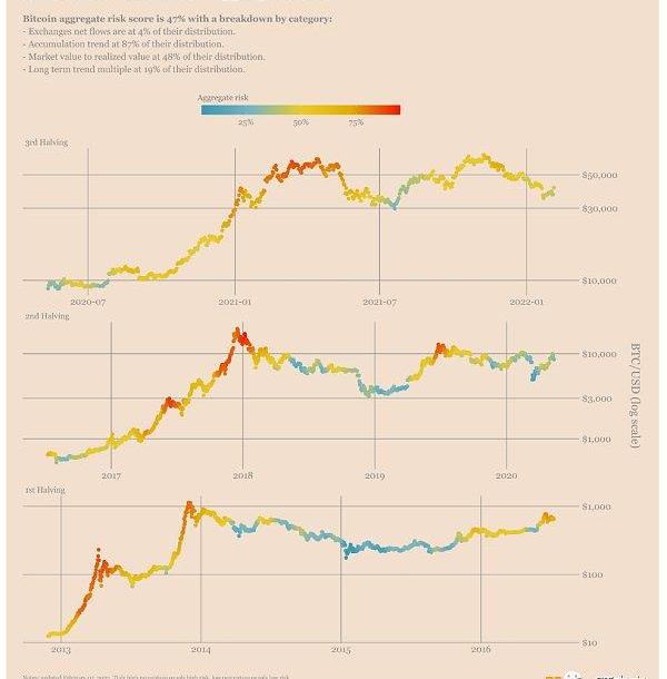 Nick認為比特幣的估值在未來幾個月有足夠增長空間,理由是所謂的“綜合風險評分”,該評分來自四個參數:市場過度擴張的風險、低需求和高供應情況的風險、風險持有者獲利了結,以及拋售壓力增加的風險。