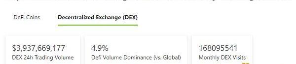 2.過去24小時去中心化交易所的交易量:39.37億美元