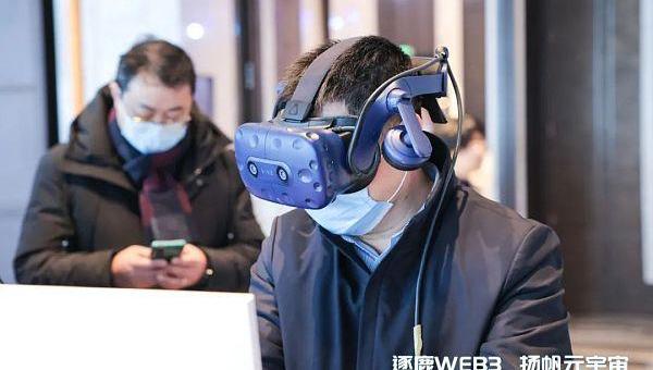 “這是我簡單搭建的一個展廳,大家可以跟我一起參觀。左邊放著的是新區的標志,再往前是本次大會的參會紀念徽章,是存儲在區塊鏈上的出勤證明。對面還有一些早期的小游戲……”活動現場,新區企業純白矩陣總經理吳嘯向在座嘉賓介紹了元宇宙的前世今生以及國內外元宇宙生態,并展示了他會前在元宇宙里搭建的一個簡易展廳。