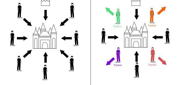 1982年,Lamport,Shostak和Pease首次提出拜占庭將軍問題,一群拜占庭將軍分別從不同的位置圍困一座城市,需要決定進攻或撤退。但是處于不同位置的將軍只能通過信使互相聯系,如果這些將軍中出現叛徒,那么叛徒可以向不同的將軍發送不同的消息,比如向傾向于撤退的將軍發送其他將軍也打算撤退的假消息,擾亂大家的決定。