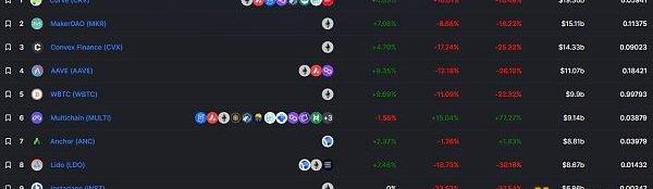 DeFi項目鎖定資產前十排名及鎖倉量數據來源:defillama