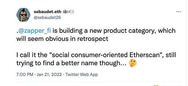 不過,真正的進步應該是當你能發現并與他人取得聯系的時候。也就是真正的社交互動。目前還沒有一個比較好的案例,但像Context和Zapper這樣的項目未來一定會成為頂尖,前者以“新聞提要”的形式更新NFT轉讓和銷售活動的消息,后者也正在取得新的進展。
