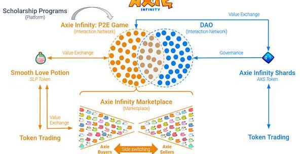 AxieInfinity是最大的即賺即賺(P2E)游戲,截至2021年11月,每月有超過220萬玩家。正如您在上面的動畫中看到的,AxieInfinity結合了四種不同的網絡效應: