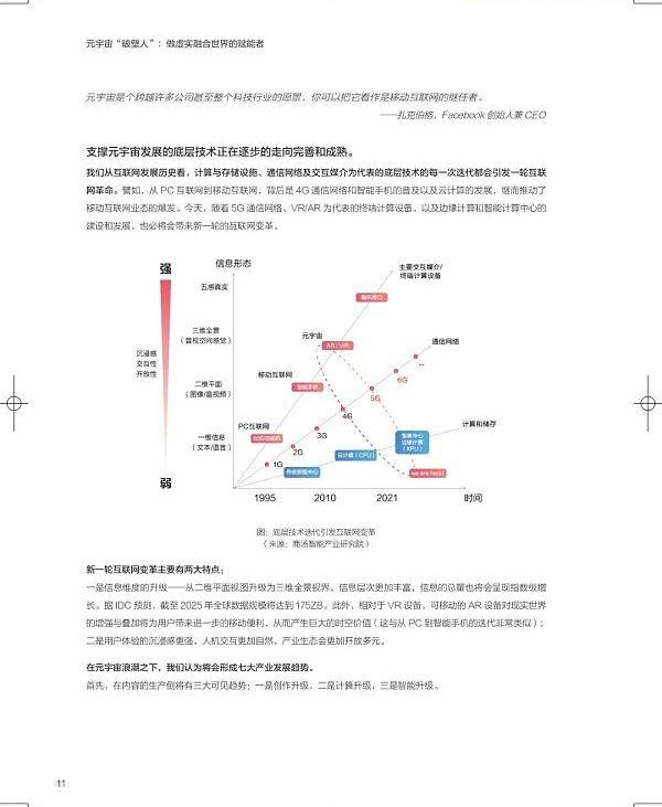 技術的發展是文明進化的動力。我們正處于從工業文明邁入數字文明的重要關口,新基建的廣泛部署推動了信息技術的快速發展、數據要素的深度融合。這一進程不僅帶來數字經濟的蓬勃發展,也將推動人類文明邁向新臺階。因此,從技術角度看,元宇宙文明將是人類文明新的發展形態。