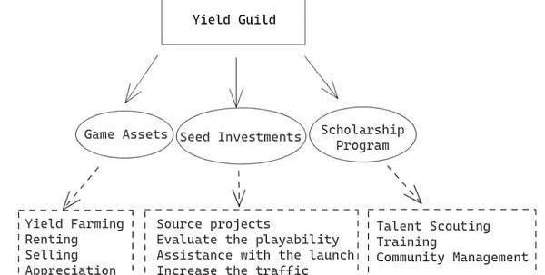 生態系統中有三個元素與YGG直接相關:種子投資、二級市場和獎學金項目。不要將YGG視為一個游戲公會,而是將其視為一個專注于加密貨幣/非加密游戲的投資機構,與玩家和開發者都有著非常密切的關系,不僅在經濟上為項目提供幫助,還在項目指導和社區貢獻方面提供幫助。