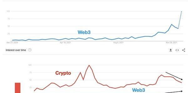 34、在整個2021年,web3的敘述一直在升溫,人們對該術語的興趣在第四季度加速。