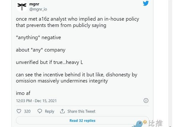 目前的Web3.0運動充滿了噪音。人們叫囂著gm和wagmi,在實際上什么都沒有的情況下建立一種虛假的社區感。我沒有看到任何產品、任何服務。我看到的是糟糕的代幣經濟學。這篇文章甚至承認他們將不斷需要新人來維持代幣價格。這不就是一個赤裸裸的龐氏騙局么??文章鏈接:https://every.mirror.xyz/y_WLA-Tk3VF5uPqHi-glDLVVfHxLUbjXakRI7SMISas
