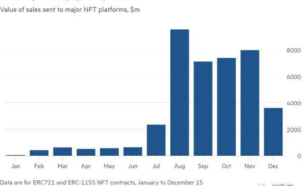 根據加密貨幣分析組織Chainalysis的數據,在截至12月15日的一年里,總共有409億美元被投入到通常用于創建NFT的以太坊區塊鏈合約中。如果包括在其他區塊鏈上鑄造的NFT,如solana,總數甚至會更高。