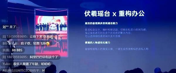 在前不久網易云音樂剛剛進行的IPO儀式上,網易創始人丁磊在現場進行了敲鐘,同時兩個不同時代的丁磊的“分身”還參與了一個線上敲鐘儀式。背后,則是網易的伏羲瑤臺系統,這是一款網易想要重構辦公場景的平臺,具有高效的音頻多房間通話能力和人物虛擬化能力。