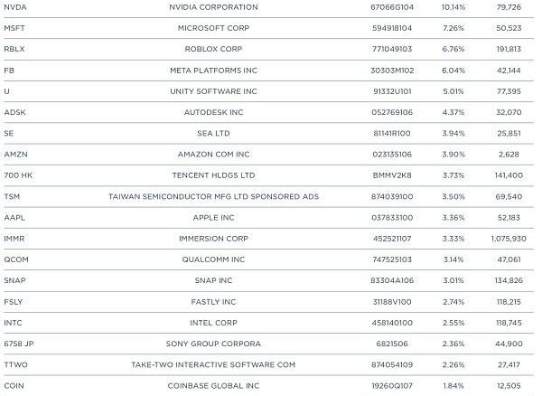 前文提到的元宇宙ETF——RoundhillBallMetaverseETF基本涵蓋了上文提到的公司,費率為0.75%。RoundhillInvestments是一家資產管理公司,其管理者MatthewBall是一位風險資本家,他預測元宇宙將是“一個全面運作的經濟”和一種“跨越數字和物理世界”的體驗。