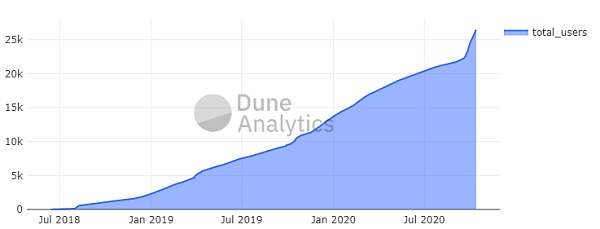 但百萬美元量級的交易量相比DeFi頭部項目自然是小巫見大巫,活躍用戶數方面也是如此——根據duneanalytics數據,截至10月9日,NFT生態中用戶數排名前二的OpenSea和Rarible,活躍用戶數分別為25707人、7331人,而同期DeFi頭部項目Uniswap與Kyber的活躍用戶數則為382589人、104008人,依舊是數量級的差距。